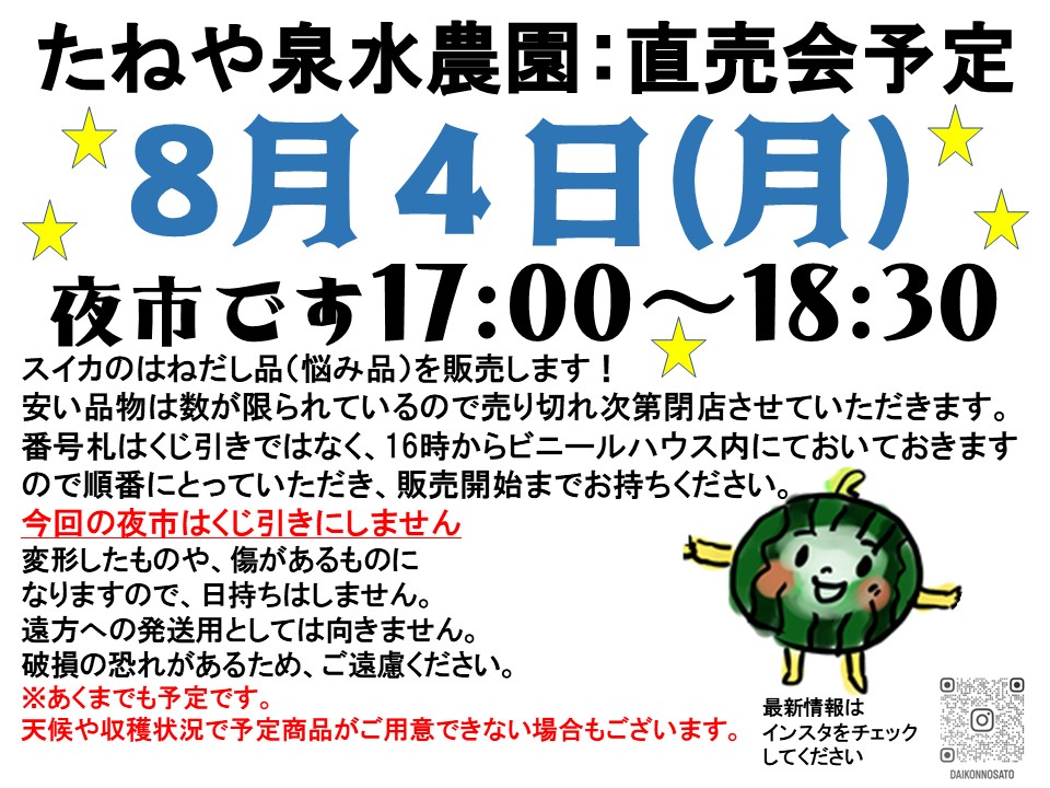 キッチンカーは来年から5年目に突入します。山あり谷ありですが、売れるものと、こだわってるものとは違うということは分かっていても、大根、スイカ、メロン、じゃがいも!