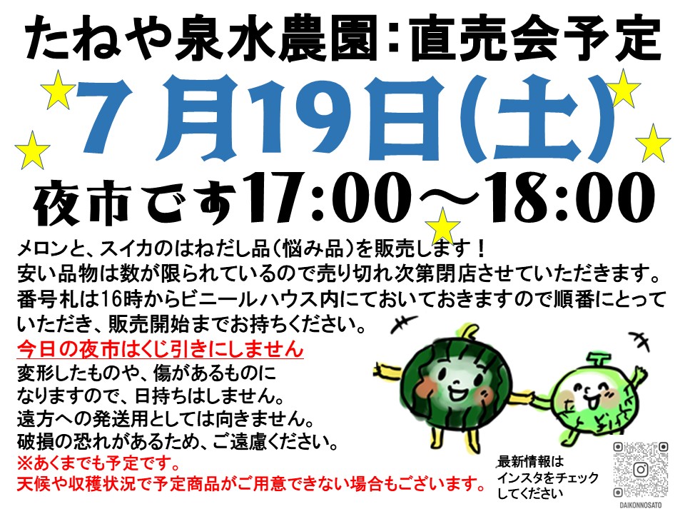 キッチンカーは来年から5年目に突入します。山あり谷ありですが、売れるものと、こだわってるものとは違うということは分かっていても、大根、スイカ、メロン、じゃがいも!