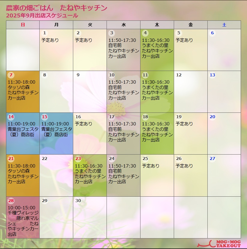 9月もスタートしているのに、スケジュールのアップがそれぞれの媒体で間に合わずスミマセン💦