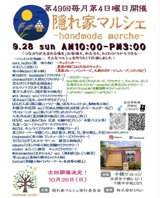 10/26(日)千種ヴィレッジで開催されている大人気隠れ家マルシェ。