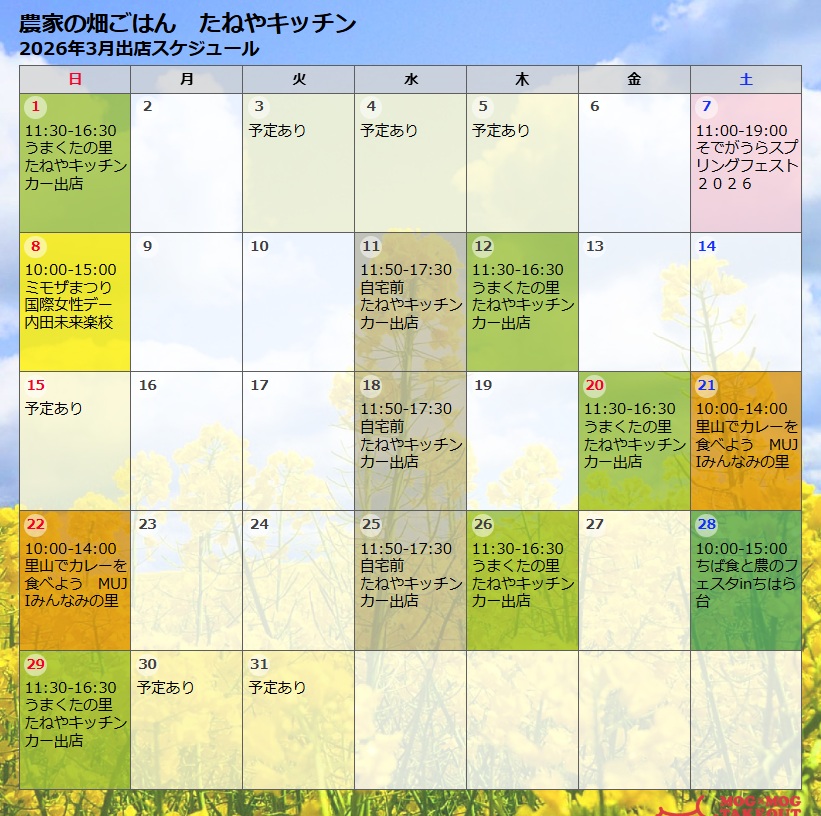 2026年3月の予定表です。