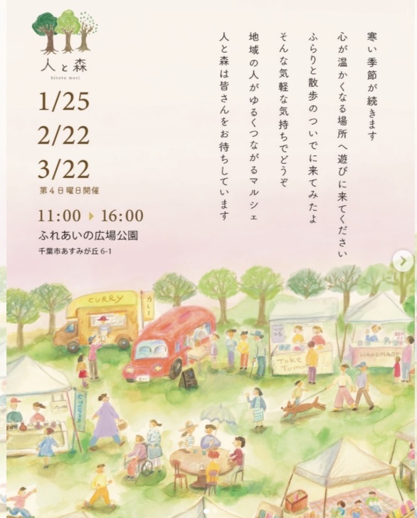 2/22(日)人と森マルシェ あすみが丘ふれあい広場(チバリーヒルズの横)